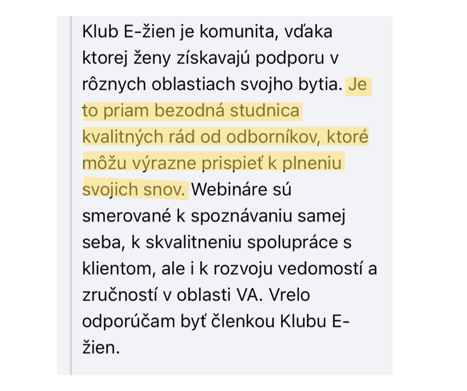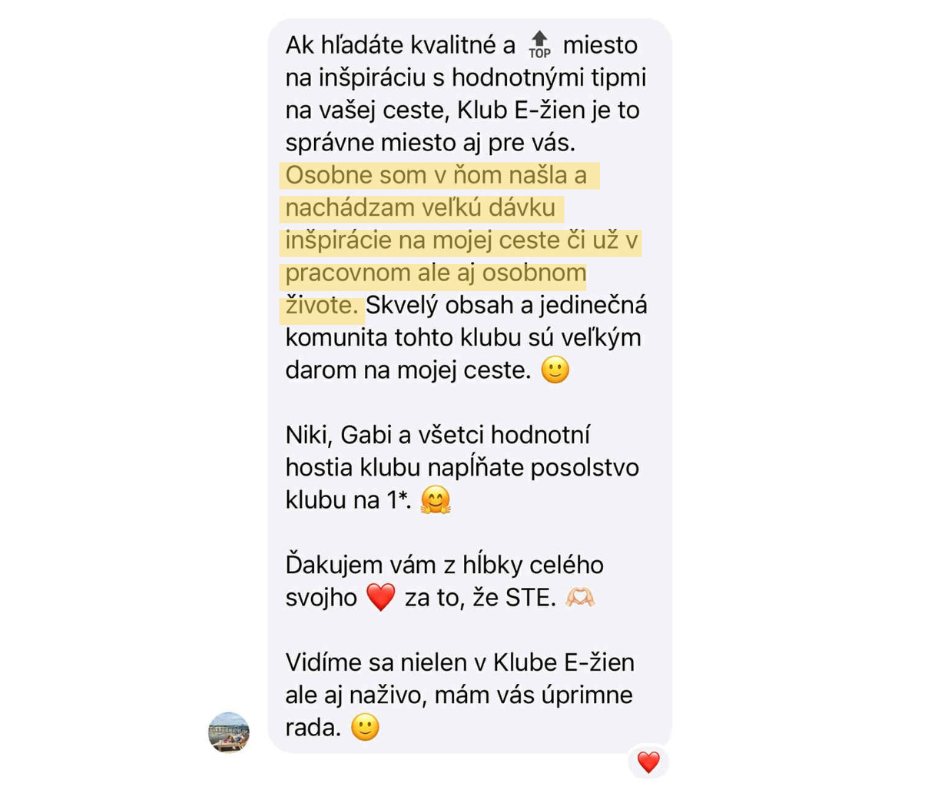 💫 Klub E-žien vás svojimi témami môže nadchnúť, posilniť a inšpirovať k zmenám, ktoré majú zmysel.