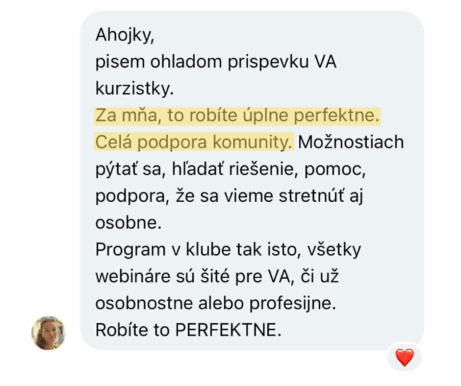 V online svete môžeš zarábať aj s tým, čo už vieš - nepotrebuješ desiatky kurzov. VA je cesta, ktorú môžeš rozbehnúť hneď - s podporou a know-how, ktoré nájdeš v Klube. Dostaneš prístup k webinárom, kontaktom, k praktickým tipom a ku komunite, ktorá ti pomôže napredovať ako VA.