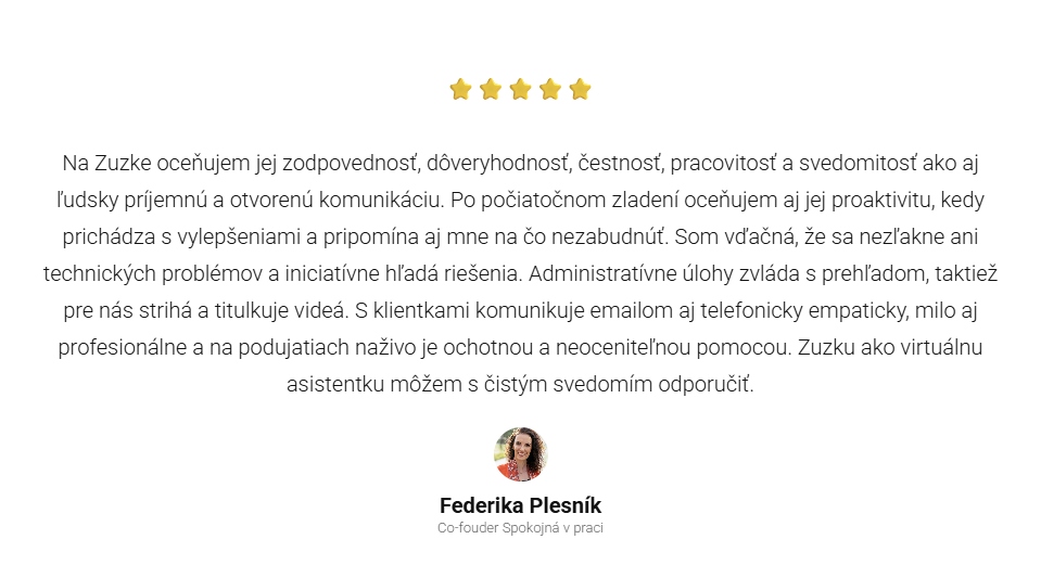 Mojím cieľom je pomáhať podnikateľom a firmám získať viac času na rozvoj biznisu, rodinu alebo záľuby tým, že preberám rutinné a administratívne úlohy za nich.